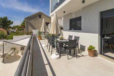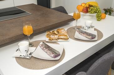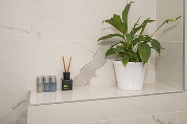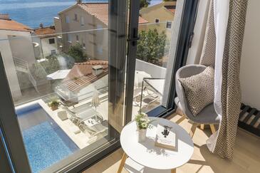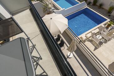 Appartamento può accogliere 4 ospiti. I letti sono disposti nelle camere da letto che sono 2, su 76m2. Gli ospiti hanno a disposizione il proprio terrazzo per godere nelle calde serate estive. Dall'appartamento si gode di una vista sul mare. Per il piacere totale e il relax c'è il barbecue privato solo per gli ospiti di quest'alloggio. Durante il soggiorno gli ospiti possono utilizzare la piscina comune.