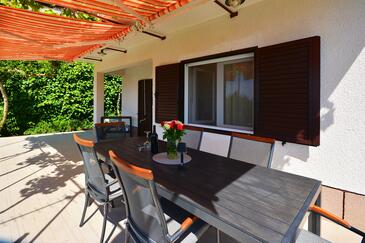 Casa può accogliere 7 ospiti. I letti sono disposti nelle camere da letto che sono 3, su 80m2. Gli ospiti hanno a disposizione il proprio terrazzo per godere nelle calde serate estive. Dalla casa si gode di una vista sul mare. Per il piacere totale e il relax c'è il barbecue privato solo per gli ospiti di quest'alloggio. Arrivati nell'unità d'alloggio i clienti devono pagare un deposito (il prezzo è indicato sul sito).