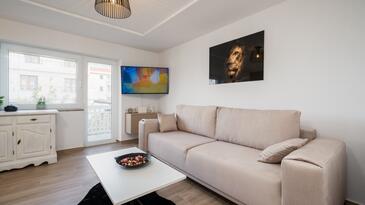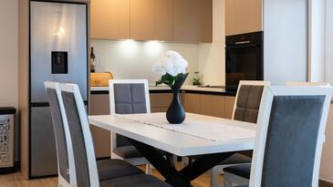 Appartamento può accogliere 4 ospiti. I letti sono disposti nelle camere da letto che sono 2, e nella camera di soggiorno, su 44m2. Gli ospiti hanno a disposizione il proprio terrazzo per godere nelle calde serate estive. Si può preparare il cibo utilizzando il barbecue comune. Nell'unità di alloggio si possono portare gli animali domestici con un pagamento supplementare. Arrivati nell'unità d'alloggio i clienti devono pagare un deposito (il prezzo è indicato sul sito).