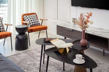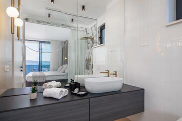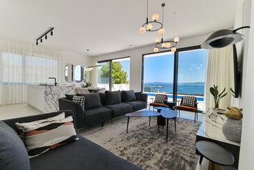 Casa può accogliere 10 ospiti. I letti sono disposti nelle camere da letto che sono 5, su 230m2. Gli ospiti hanno a disposizione il proprio terrazzo per godere nelle calde serate estive. Dalla casa si gode di una vista sul mare. Per il piacere totale e il relax c'è il barbecue privato solo per gli ospiti di quest'alloggio. Durante il soggiorno gli ospiti si possono rilassare nella piscina privata. Nell'unità di alloggio si possono portare gli animali domestici con un pagamento supplementare.