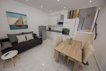 Appartamento può accogliere 4 ospiti. I letti sono disposti nelle camere da letto che sono 2, su 42m2. Gli ospiti hanno a disposizione il proprio terrazzo per godere nelle calde serate estive. Dall'appartamento si gode di una vista sul mare. Si può preparare il cibo utilizzando il barbecue comune.