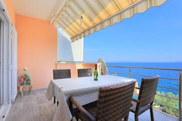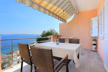 Appartamento può accogliere 4 ospiti. I letti sono disposti nelle camere da letto che sono 2, su 36m2. Gli ospiti hanno a disposizione il proprio terrazzo per godere nelle calde serate estive. Dall'appartamento si gode di una vista sul mare. Si può preparare il cibo utilizzando il barbecue comune.