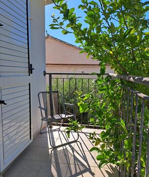Appartamento può accogliere 5 ospiti. I letti sono disposti nelle camere da letto che sono 2, e nella camera di soggiorno, su 42m2. Gli ospiti hanno a disposizione il proprio balcone per godere delle calde serate estive. Dall'appartamento si gode di una vista sul mare. Si può preparare il cibo utilizzando il barbecue comune.
