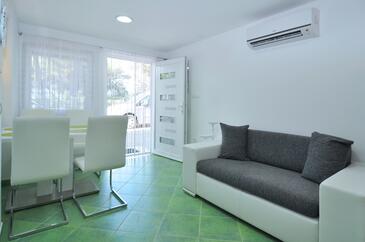Appartamento può accogliere 6 ospiti. I letti sono disposti nelle camere da letto che sono 2, e nella camera di soggiorno, su 72m2. Gli ospiti hanno a disposizione il proprio terrazzo per godere nelle calde serate estive. Dall'appartamento si gode di una vista sul mare. Si può preparare il cibo utilizzando il barbecue comune. Nell'unità di alloggio si possono portare gli animali domestici con un pagamento supplementare.