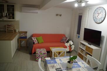Appartamento può accogliere 5 ospiti. I letti sono disposti nelle camere da letto che sono 2, e nella camera di soggiorno, su 41m2. Gli ospiti hanno a disposizione il proprio terrazzo per godere nelle calde serate estive. Dall'appartamento si gode di una vista sul mare. Per il piacere totale e il relax c'è il barbecue privato solo per gli ospiti di quest'alloggio.