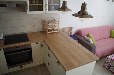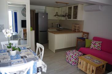 Appartamento può accogliere 5 ospiti. I letti sono disposti nelle camere da letto che sono 2, e nella camera di soggiorno, su 41m2. Gli ospiti hanno a disposizione il proprio terrazzo per godere nelle calde serate estive. Dall'appartamento si gode di una vista sul mare. Per il piacere totale e il relax c'è il barbecue privato solo per gli ospiti di quest'alloggio.