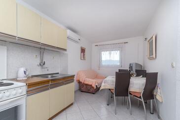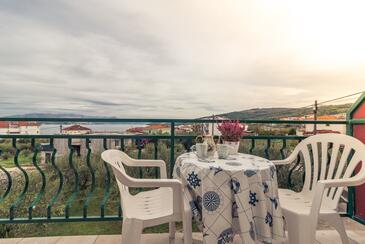 Appartamento può accogliere 4 ospiti. I letti sono disposti nelle camere da letto che sono 2, su 45m2. Gli ospiti hanno a disposizione il proprio terrazzo per godere nelle calde serate estive. Dall'appartamento si gode di una vista sul mare. Si può preparare il cibo utilizzando il barbecue comune.