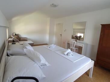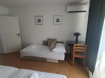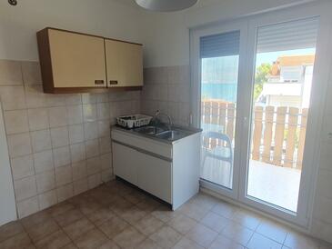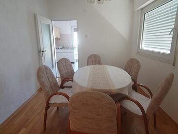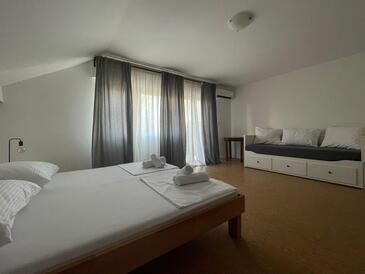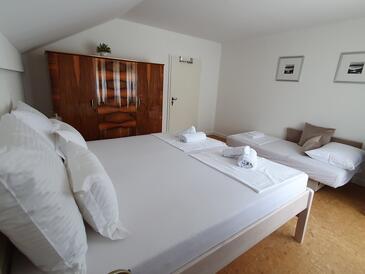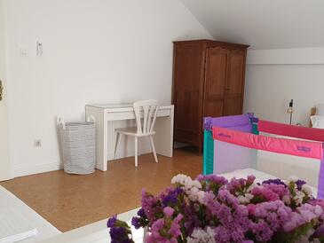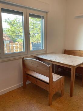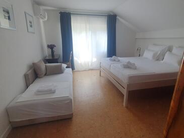 Appartamento può accogliere 9 ospiti. I letti sono disposti nelle camere da letto che sono 2, e nella camera di soggiorno, su 105m2. Gli ospiti hanno a disposizione il proprio terrazzo per godere nelle calde serate estive. Dall'appartamento si gode di una vista sul mare. Si può preparare il cibo utilizzando il barbecue comune.