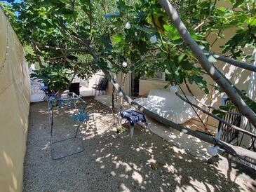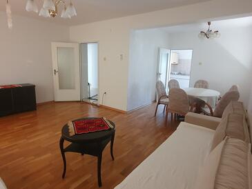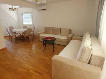 Appartamento può accogliere 9 ospiti. I letti sono disposti nelle camere da letto che sono 2, e nella camera di soggiorno, su 105m2. Gli ospiti hanno a disposizione il proprio terrazzo per godere nelle calde serate estive. Dall'appartamento si gode di una vista sul mare. Si può preparare il cibo utilizzando il barbecue comune.