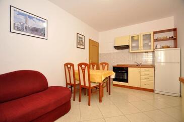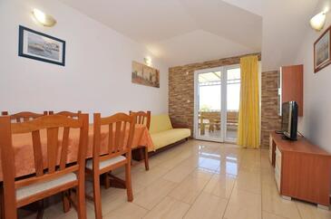 Appartamento può accogliere 6 ospiti. I letti sono disposti nelle camere da letto che sono 3, e nella camera di soggiorno, su 67m2. Gli ospiti hanno a disposizione il proprio terrazzo per godere nelle calde serate estive. Dall'appartamento si gode di una vista sul mare. Si può preparare il cibo utilizzando il barbecue comune.