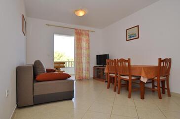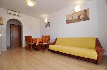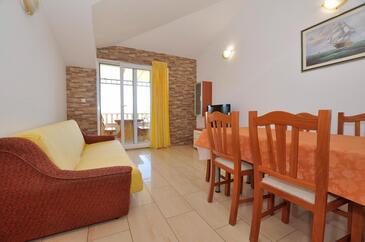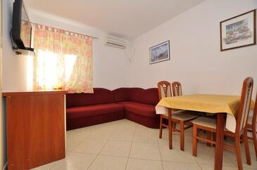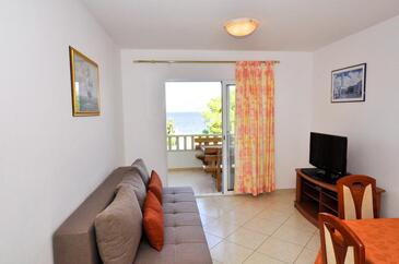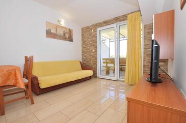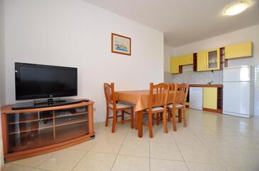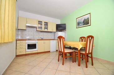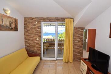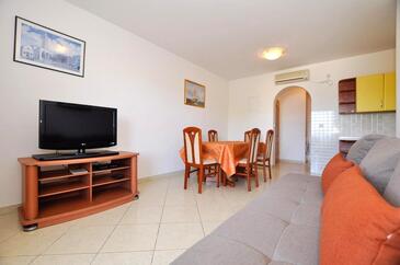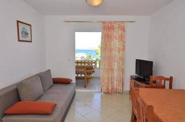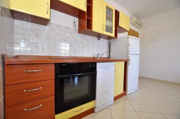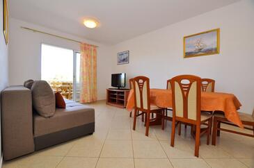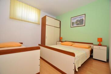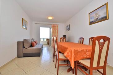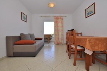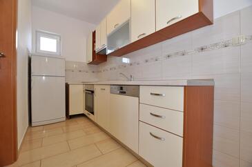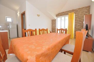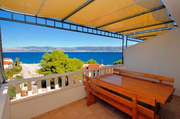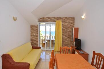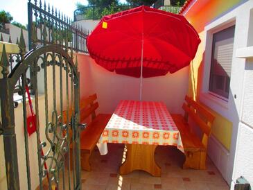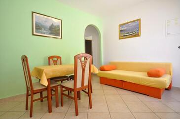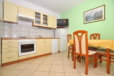 Appartamento può accogliere 6 ospiti. I letti sono disposti nelle camere da letto che sono 3, e nella camera di soggiorno, su 67m2. Gli ospiti hanno a disposizione il proprio terrazzo per godere nelle calde serate estive. Dall'appartamento si gode di una vista sul mare. Si può preparare il cibo utilizzando il barbecue comune.