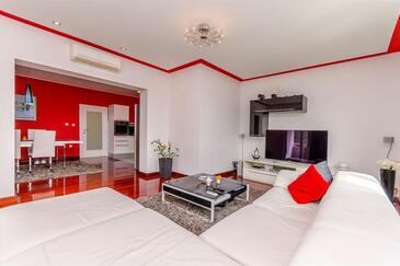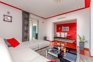 Appartamento può accogliere 6 ospiti. I letti sono disposti nelle camere da letto che sono 3, e nella camera di soggiorno, su 113m2. Gli ospiti hanno a disposizione il proprio terrazzo per godere nelle calde serate estive. Dall'appartamento si gode di una vista sul mare. Si può preparare il cibo utilizzando il barbecue comune.