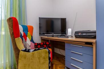 Appartamento può accogliere 6 ospiti. I letti sono disposti nelle camere da letto che sono 3, e nella camera di soggiorno, su 113m2. Gli ospiti hanno a disposizione il proprio terrazzo per godere nelle calde serate estive. Dall'appartamento si gode di una vista sul mare. Si può preparare il cibo utilizzando il barbecue comune.