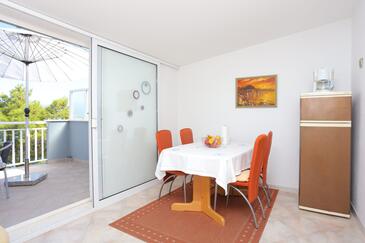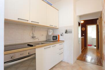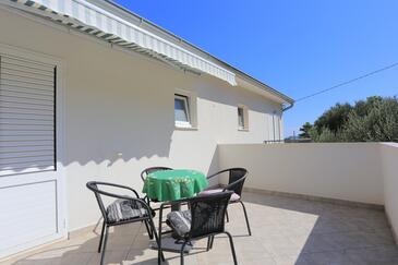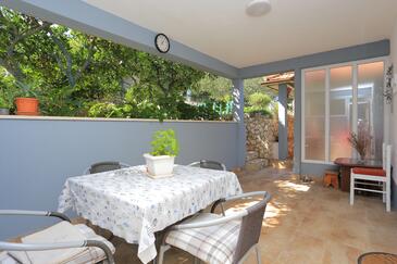 Appartamento può accogliere 4 ospiti. I letti sono disposti nelle camere da letto che sono 2, su 44m2. Gli ospiti hanno a disposizione il proprio terrazzo per godere nelle calde serate estive. Dall'appartamento si gode di una vista sul mare. Si può preparare il cibo utilizzando il barbecue comune.