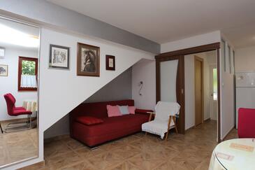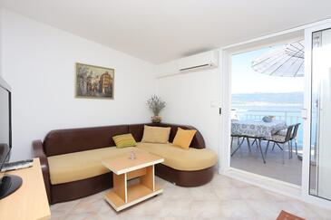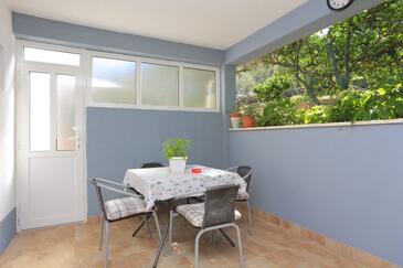 Appartamento può accogliere 4 ospiti. I letti sono disposti nelle camere da letto che sono 2, su 44m2. Gli ospiti hanno a disposizione il proprio terrazzo per godere nelle calde serate estive. Dall'appartamento si gode di una vista sul mare. Si può preparare il cibo utilizzando il barbecue comune.