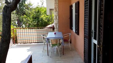 Appartamento può accogliere 4 ospiti. I letti sono disposti nelle camere da letto che sono 2, su 38m2. Gli ospiti hanno a disposizione il proprio terrazzo per godere nelle calde serate estive. Dall'appartamento si gode di una vista sul mare.