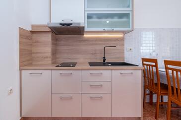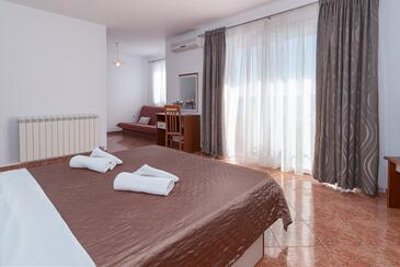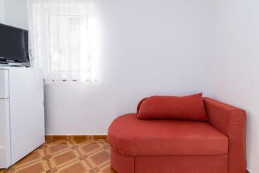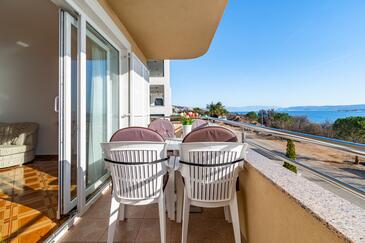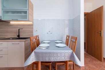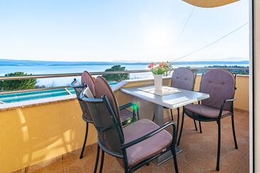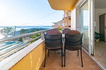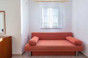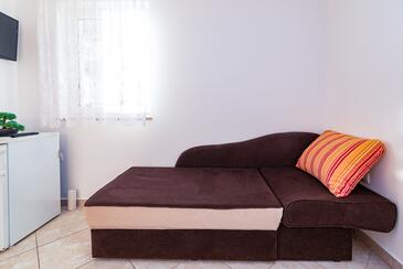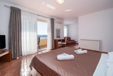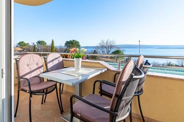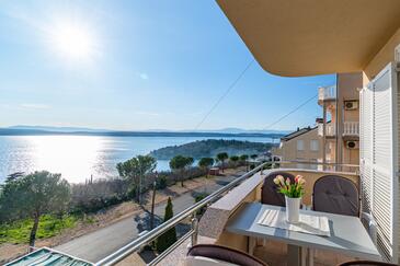 Appartamento può accogliere 5 ospiti. I letti sono disposti nelle camere da letto che sono 2, e nella camera di soggiorno, su 68m2. Gli ospiti hanno a disposizione il proprio balcone per godere delle calde serate estive. Dall'appartamento si gode di una vista sul mare. Si può preparare il cibo utilizzando il barbecue comune. Durante il soggiorno gli ospiti possono utilizzare la piscina comune. Nell'unità di alloggio si possono portare gli animali domestici con un pagamento supplementare.