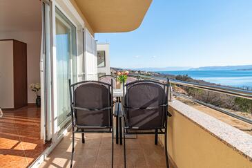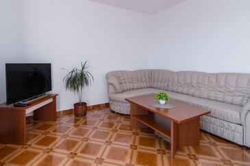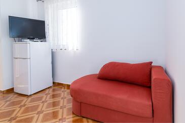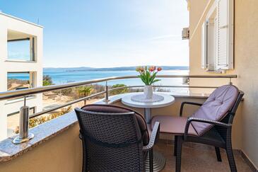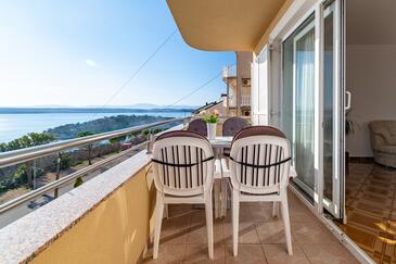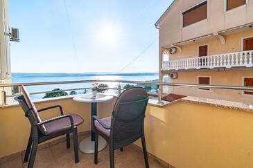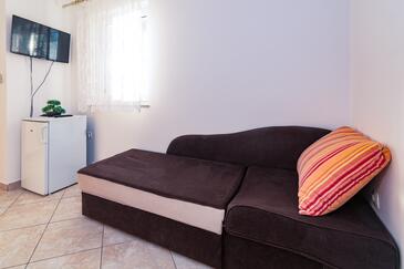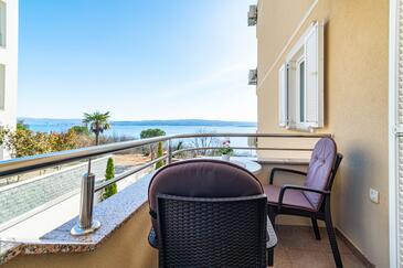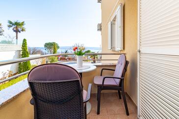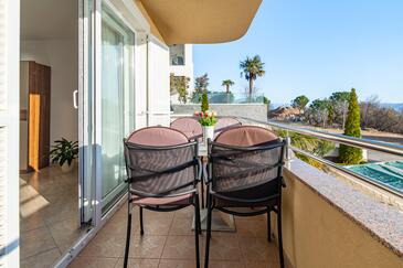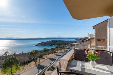 Appartamento può accogliere 5 ospiti. I letti sono disposti nelle camere da letto che sono 2, e nella camera di soggiorno, su 68m2. Gli ospiti hanno a disposizione il proprio balcone per godere delle calde serate estive. Dall'appartamento si gode di una vista sul mare. Si può preparare il cibo utilizzando il barbecue comune. Durante il soggiorno gli ospiti possono utilizzare la piscina comune. Nell'unità di alloggio si possono portare gli animali domestici con un pagamento supplementare.