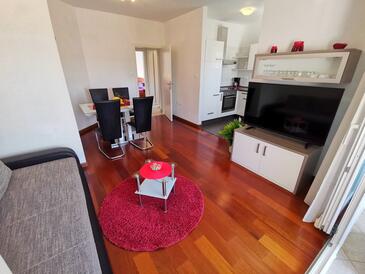 Appartamento può accogliere 4 ospiti. I letti sono disposti nelle camere da letto che sono 2, su 60m2. Gli ospiti hanno a disposizione il proprio balcone per godere delle calde serate estive. Dall'appartamento si gode di una vista sul mare. Arrivati nell'unità d'alloggio i clienti devono pagare un deposito (il prezzo è indicato sul sito).
