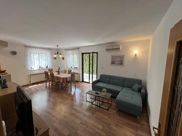 Appartamento può accogliere 5 ospiti. I letti sono disposti nelle camere da letto che sono 2, su 67m2. Gli ospiti hanno a disposizione il proprio terrazzo per godere nelle calde serate estive. Si può preparare il cibo utilizzando il barbecue comune.
