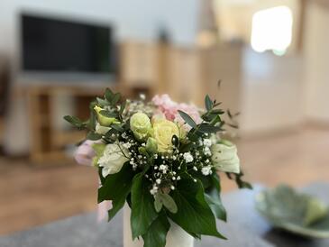Appartamento può accogliere 5 ospiti. I letti sono disposti nelle camere da letto che sono 2, su 67m2. Gli ospiti hanno a disposizione il proprio terrazzo per godere nelle calde serate estive. Si può preparare il cibo utilizzando il barbecue comune.
