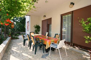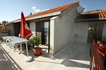 Appartamento può accogliere 8 ospiti. I letti sono disposti nelle camere da letto che sono 3, su 83m2. Gli ospiti hanno a disposizione il proprio terrazzo per godere nelle calde serate estive. Dall'appartamento si gode di una vista sul mare. Si può preparare il cibo utilizzando il barbecue comune.
