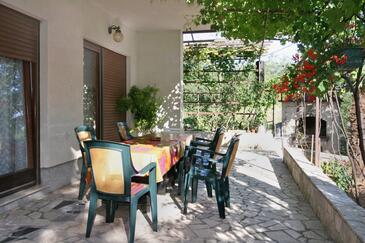 Appartamento può accogliere 8 ospiti. I letti sono disposti nelle camere da letto che sono 3, su 83m2. Gli ospiti hanno a disposizione il proprio terrazzo per godere nelle calde serate estive. Dall'appartamento si gode di una vista sul mare. Si può preparare il cibo utilizzando il barbecue comune.