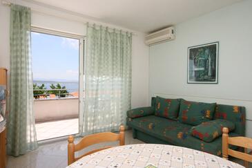 Appartamento può accogliere 6 ospiti. I letti sono disposti nelle camere da letto che sono 1, e nella sala da pranzo, su 40m2. Gli ospiti hanno a disposizione il proprio balcone per godere delle calde serate estive. Dall'appartamento si gode di una vista sul mare. Si può preparare il cibo utilizzando il barbecue comune. Nell'unità di alloggio si possono portare gli animali domestici con un pagamento supplementare.