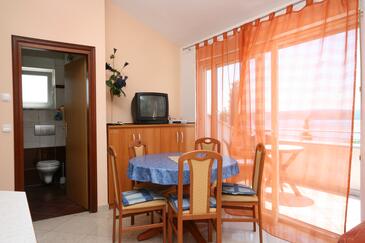 Appartamento può accogliere 6 ospiti. I letti sono disposti nelle camere da letto che sono 1, e nella sala da pranzo, su 40m2. Gli ospiti hanno a disposizione il proprio balcone per godere delle calde serate estive. Dall'appartamento si gode di una vista sul mare. Si può preparare il cibo utilizzando il barbecue comune. Nell'unità di alloggio si possono portare gli animali domestici con un pagamento supplementare.