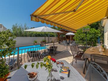Casa può accogliere 8 ospiti. I letti sono disposti nelle camere da letto che sono 5, su 161m2. Gli ospiti hanno a disposizione il proprio terrazzo per godere nelle calde serate estive. Per il piacere totale e il relax c'è il barbecue privato solo per gli ospiti di quest'alloggio. Durante il soggiorno gli ospiti si possono rilassare nella piscina privata. Arrivati nell'unità d'alloggio i clienti devono pagare un deposito (il prezzo è indicato sul sito).