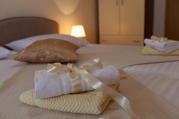 Appartamento può accogliere 4 ospiti. I letti sono disposti nelle camere da letto che sono 2, su 46m2. Gli ospiti hanno a disposizione il proprio terrazzo per godere nelle calde serate estive. Dall'appartamento si gode di una vista sul mare. Si può preparare il cibo utilizzando il barbecue comune. Nell'unità di alloggio si possono portare gli animali domestici con un pagamento supplementare.
