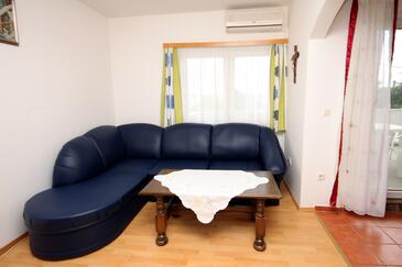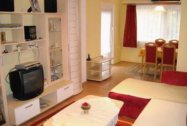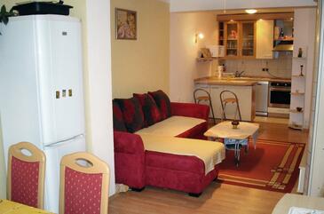 Appartamento può accogliere 5 ospiti. I letti sono disposti nelle camere da letto che sono 2, su 54m2. Gli ospiti hanno a disposizione il proprio terrazzo per godere nelle calde serate estive. Dall'appartamento si gode di una vista sul mare. Si può preparare il cibo utilizzando il barbecue comune.