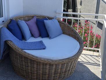 Appartamento può accogliere 4 ospiti. I letti sono disposti nelle camere da letto che sono 2, su 48m2. Gli ospiti hanno a disposizione il proprio terrazzo per godere nelle calde serate estive. Dall'appartamento si gode di una vista sul mare. Si può preparare il cibo utilizzando il barbecue comune.