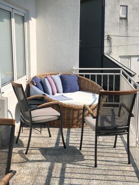 Appartamento può accogliere 4 ospiti. I letti sono disposti nelle camere da letto che sono 2, su 48m2. Gli ospiti hanno a disposizione il proprio terrazzo per godere nelle calde serate estive. Dall'appartamento si gode di una vista sul mare. Si può preparare il cibo utilizzando il barbecue comune.