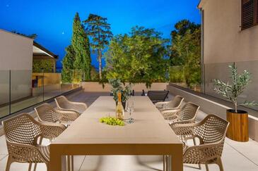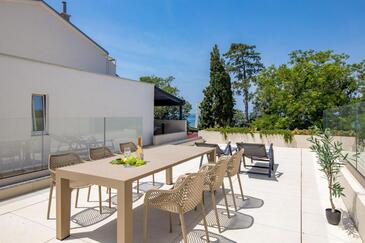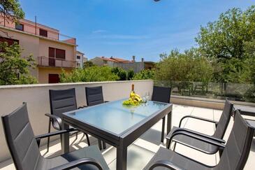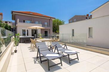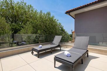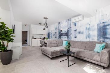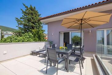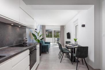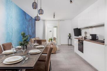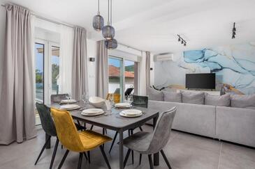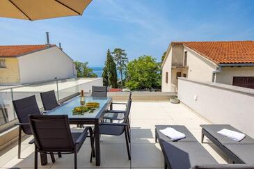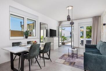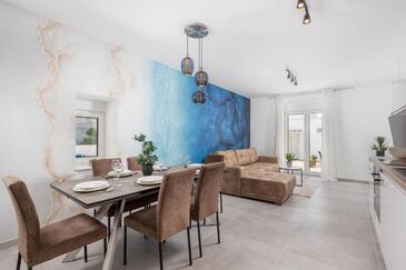 Appartamento può accogliere 5 ospiti. I letti sono disposti nelle camere da letto che sono 2, e nella camera di soggiorno, su 60m2. Gli ospiti hanno a disposizione il proprio terrazzo per godere nelle calde serate estive. Dall'appartamento si gode di una vista sul mare. Durante il soggiorno gli ospiti possono utilizzare la piscina comune.