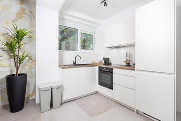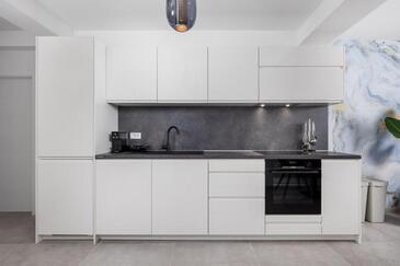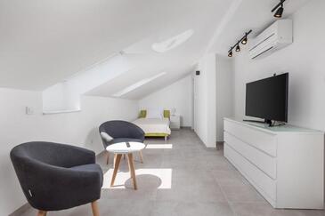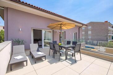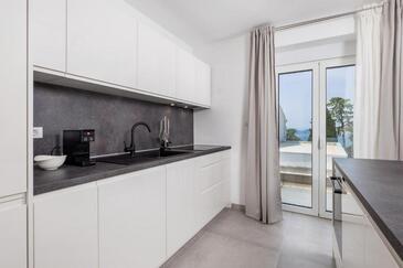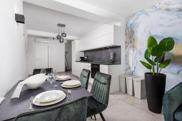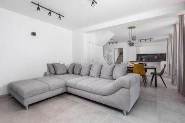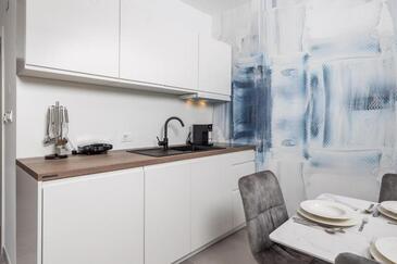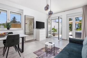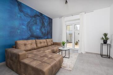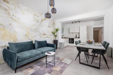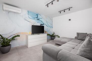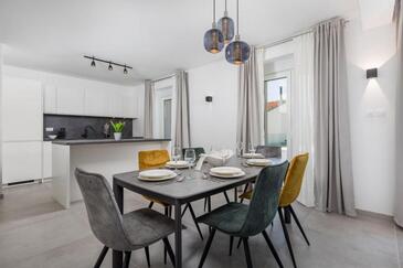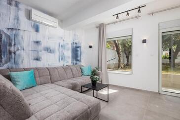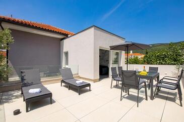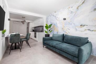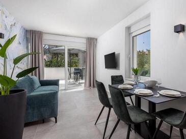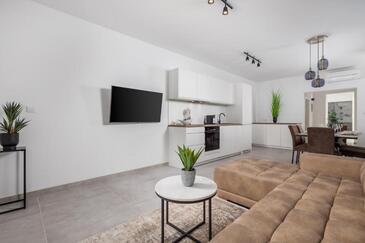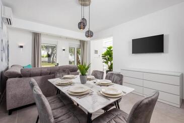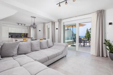 Appartamento può accogliere 5 ospiti. I letti sono disposti nelle camere da letto che sono 2, e nella camera di soggiorno, su 60m2. Gli ospiti hanno a disposizione il proprio terrazzo per godere nelle calde serate estive. Dall'appartamento si gode di una vista sul mare. Durante il soggiorno gli ospiti possono utilizzare la piscina comune.