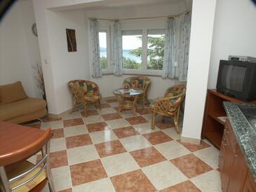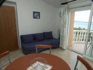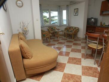 Appartamento può accogliere 5 ospiti. I letti sono disposti nelle camere da letto che sono 2, e nella camera di soggiorno, su 51m2. Gli ospiti hanno a disposizione il proprio terrazzo per godere nelle calde serate estive. Dall'appartamento si gode di una vista sul mare. L'unità d'alloggio ha delle stanze separate dal resto dell'unità.