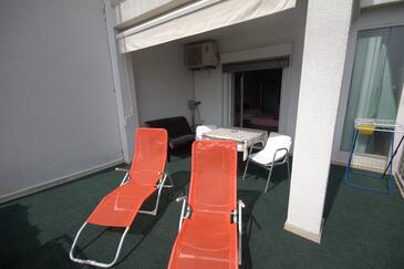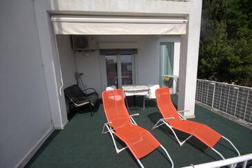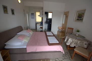 Monolocale può accogliere 2 ospiti. I letti sono disposti nelle camere da letto che sono 1, su 20m2. Gli ospiti hanno a disposizione il proprio terrazzo per godere nelle calde serate estive. Dal monolocale si gode di una vista sul mare. Si può preparare il cibo utilizzando il barbecue comune.