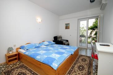 Appartamento può accogliere 5 ospiti. I letti sono disposti nelle camere da letto che sono 2, su 42m2. Gli ospiti hanno a disposizione il proprio terrazzo per godere nelle calde serate estive. Dall'appartamento si gode di una vista sul mare. Si può preparare il cibo utilizzando il barbecue comune.