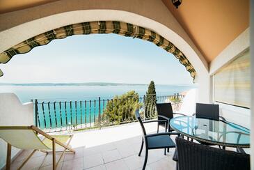 Appartamento può accogliere 5 ospiti. I letti sono disposti nelle camere da letto che sono 2, e nella camera di soggiorno, su 89m2. Gli ospiti hanno a disposizione il proprio terrazzo per godere nelle calde serate estive. Dall'appartamento si gode di una vista sul mare.