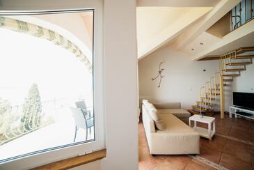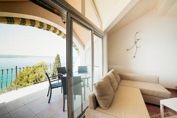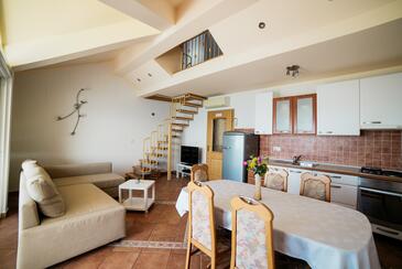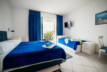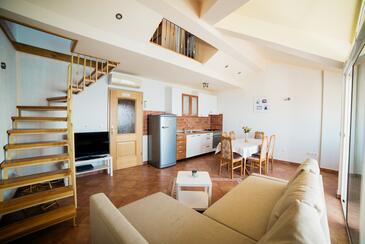 Appartamento può accogliere 5 ospiti. I letti sono disposti nelle camere da letto che sono 2, e nella camera di soggiorno, su 89m2. Gli ospiti hanno a disposizione il proprio terrazzo per godere nelle calde serate estive. Dall'appartamento si gode di una vista sul mare.
