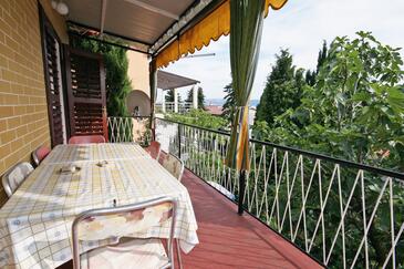 Appartamento può accogliere 6 ospiti. I letti sono disposti nelle camere da letto che sono 2, e nella camera di soggiorno, su 52m2. Gli ospiti hanno a disposizione il proprio terrazzo per godere nelle calde serate estive. Dall'appartamento si gode di una vista sul mare. Si può preparare il cibo utilizzando il barbecue comune.
