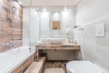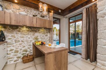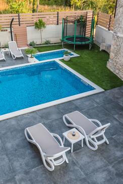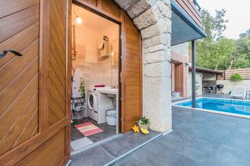 Casa può accogliere 6 ospiti. I letti sono disposti nelle camere da letto che sono 3, su 119m2. Gli ospiti hanno a disposizione il proprio terrazzo per godere nelle calde serate estive. Per il piacere totale e il relax c'è il barbecue privato solo per gli ospiti di quest'alloggio. Durante il soggiorno gli ospiti si possono rilassare nella piscina privata. Nell'unità di alloggio si possono portare gli animali domestici con un pagamento supplementare. Le stanze dell'unità d'alloggio non sono connesse in un insieme. Arrivati nell'unità d'alloggio i clienti devono pagare un deposito (il prezzo è indicato sul sito).