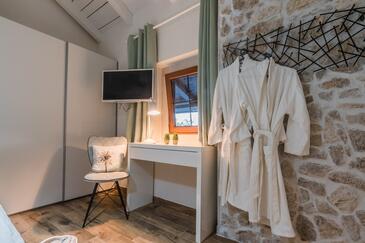 Casa può accogliere 6 ospiti. I letti sono disposti nelle camere da letto che sono 3, su 119m2. Gli ospiti hanno a disposizione il proprio terrazzo per godere nelle calde serate estive. Per il piacere totale e il relax c'è il barbecue privato solo per gli ospiti di quest'alloggio. Durante il soggiorno gli ospiti si possono rilassare nella piscina privata. Nell'unità di alloggio si possono portare gli animali domestici con un pagamento supplementare. Le stanze dell'unità d'alloggio non sono connesse in un insieme. Arrivati nell'unità d'alloggio i clienti devono pagare un deposito (il prezzo è indicato sul sito).