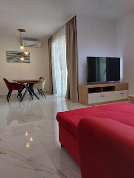 Appartamento può accogliere 6 ospiti. I letti sono disposti nelle camere da letto che sono 2, e nella camera di soggiorno, su 83m2. Gli ospiti hanno a disposizione il proprio terrazzo per godere nelle calde serate estive. Dall'appartamento si gode di una vista sul mare. Per il piacere totale e il relax c'è il barbecue privato solo per gli ospiti di quest'alloggio. Durante il soggiorno gli ospiti possono utilizzare la piscina comune. Le stanze dell'unità d'alloggio non sono connesse in un insieme.