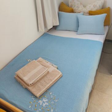Casa può accogliere 5 ospiti. I letti sono disposti nelle camere da letto che sono 3, su 60m2. Gli ospiti hanno a disposizione il proprio terrazzo per godere nelle calde serate estive. Dalla casa si gode di una vista sul mare. Per il piacere totale e il relax c'è il barbecue privato solo per gli ospiti di quest'alloggio. Nell'unità di alloggio si possono portare gli animali domestici senza alcun pagamento supplementare.