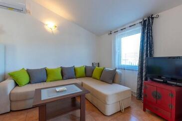 Appartamento può accogliere 5 ospiti. I letti sono disposti nelle camere da letto che sono 2, e nella camera di soggiorno, su 75m2. Gli ospiti hanno a disposizione il proprio terrazzo per godere nelle calde serate estive. Dall'appartamento si gode di una vista sul mare. Si può preparare il cibo utilizzando il barbecue comune.