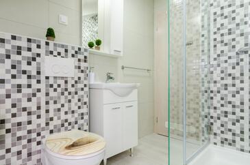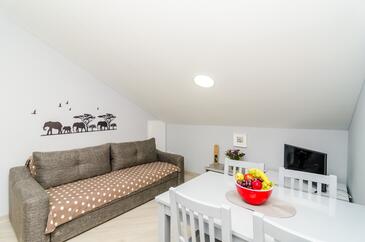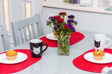 Appartamento può accogliere 5 ospiti. I letti sono disposti nelle camere da letto che sono 2, e nella camera di soggiorno, su 45m2. Gli ospiti hanno a disposizione il proprio balcone per godere delle calde serate estive. Dall'appartamento si gode di una vista sul mare.