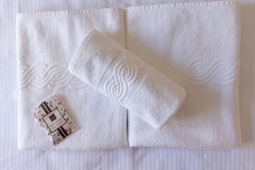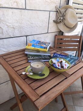 Appartamento può accogliere 4 ospiti. I letti sono disposti nelle camere da letto che sono 2, su 56m2. Gli ospiti hanno a disposizione il proprio terrazzo per godere nelle calde serate estive. Dall'appartamento si gode di una vista sul mare. Si può preparare il cibo utilizzando il barbecue comune. Altri clienti o proprietari passano per terrazzo dell'unità d'alloggio prenotata.
