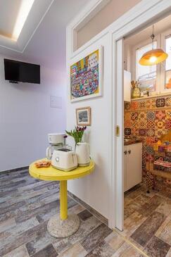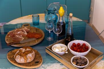 Appartamento può accogliere 4 ospiti. I letti sono disposti nelle camere da letto che sono 2, su 56m2. Gli ospiti hanno a disposizione il proprio terrazzo per godere nelle calde serate estive. Dall'appartamento si gode di una vista sul mare. Si può preparare il cibo utilizzando il barbecue comune. Altri clienti o proprietari passano per terrazzo dell'unità d'alloggio prenotata.
